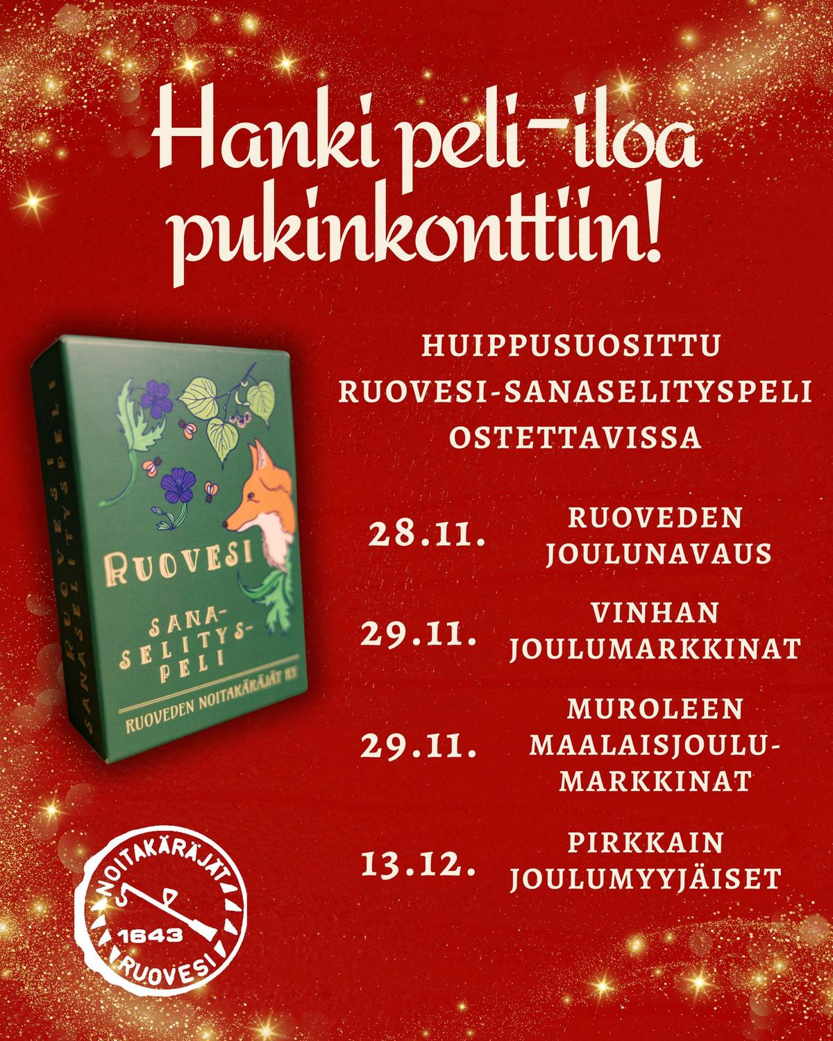 Pelin hinta on 15€ ja kaikki tulot käytetään Ruoveden Noitakäräjien tapahtumaviikon järjestämiseen.